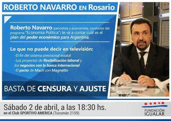 | ¡Multitudinaria convocatoria de Roberto Navarro en Rosario! (259 puntos) Posted: 03 Apr 2016 08:00 PM PDT Multitudinaria convocatoria de Roberto Navarro en Rosario El periodista brindó una charla frente a miles de personas en el club Sportivo América, en donde analizó la actualidad económica y política del país. |