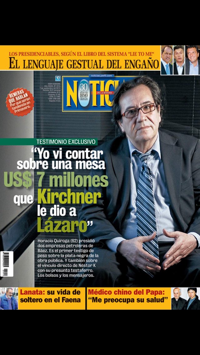 | Nisman 2: Encuentran muerto a ex socio de Lazaro Baez (293 puntos) Posted: 10 May 2016 09:10 AM PDT Hallaron muerto a un ex presidente de dos empresas de Lázaro Báez El hombre tenía 75 años. Según el comisario, podría haberse caído, debido a que tenía serios problemas respiratorios. Horacio Guillermo Quiroga, quien estuvo a cargo de dos compañías petroleras del empresario santacruceño, fue encontrado sin vida en su casa en Callao 1150. Estaba en conflicto con Lázaro Báez. |